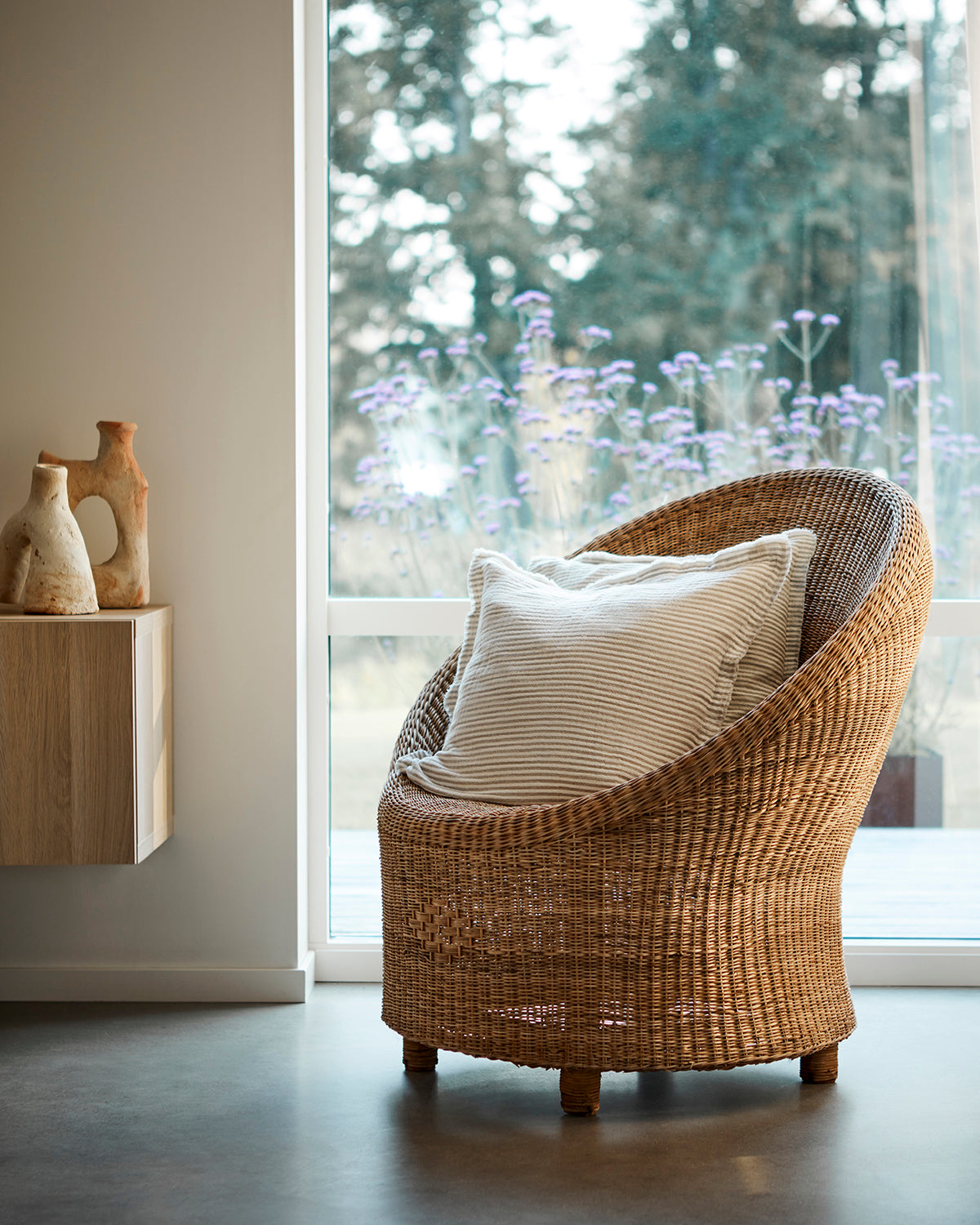 Punutud rotangist tool Linda. Tool ei sobi välistingimustesse ja niiskesse keskkonda. Hoida siseruumides või vihmakatte all, kui ilm on niiske.